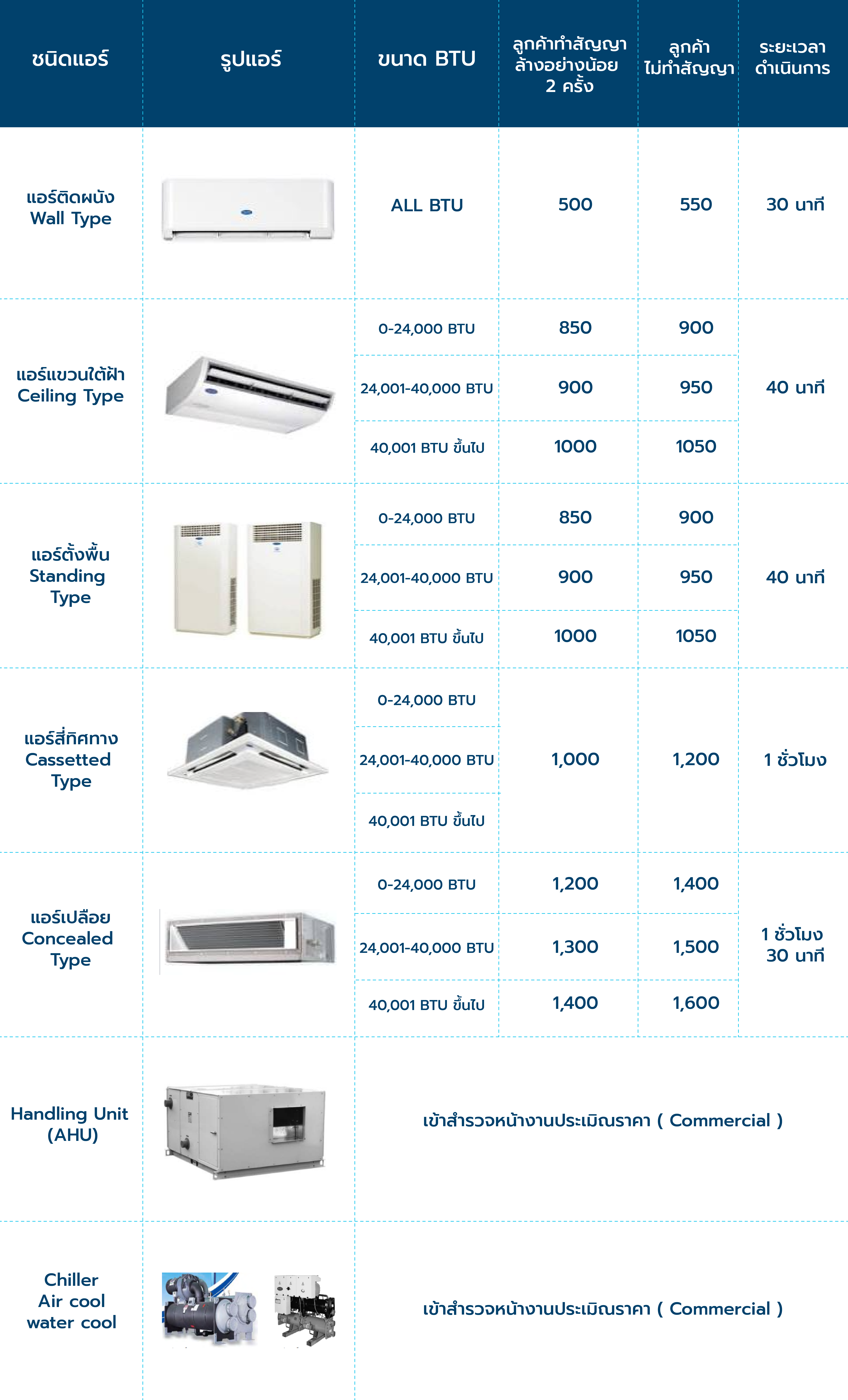 ราคาซ่อมสำหรับลูกค้าทำสัญญา (Wall Type, Ceiling Type, Cassette Type, Floor Standing)